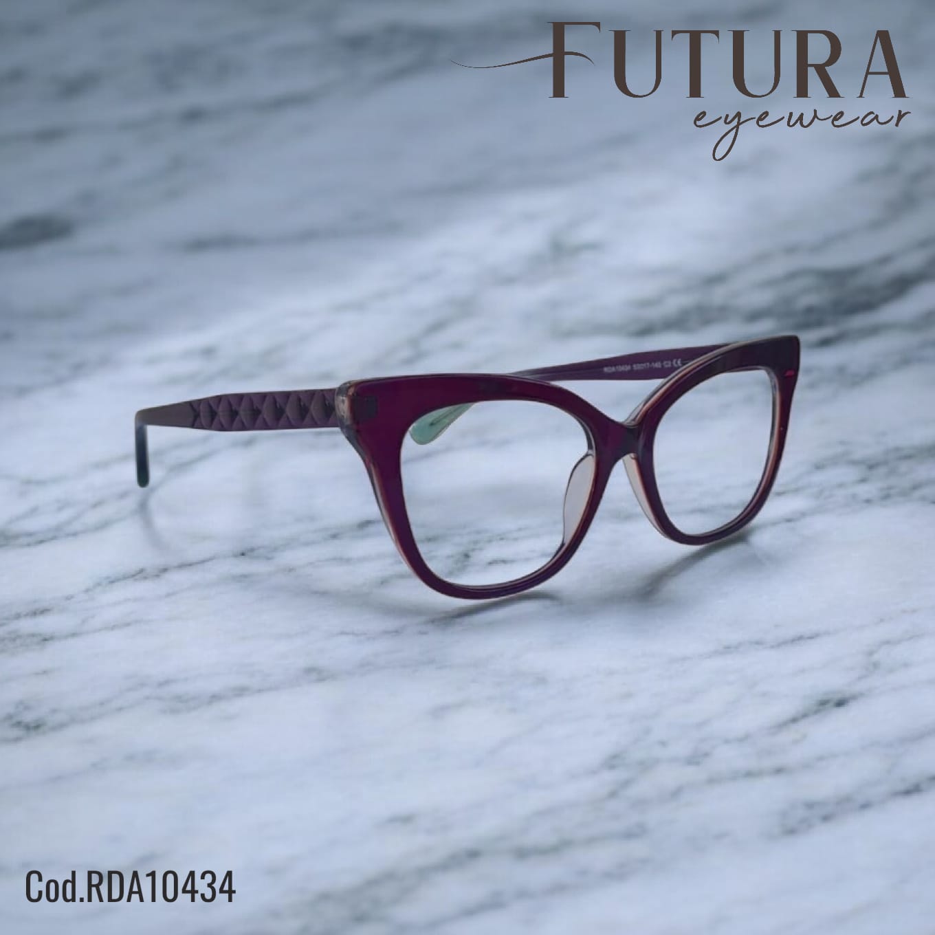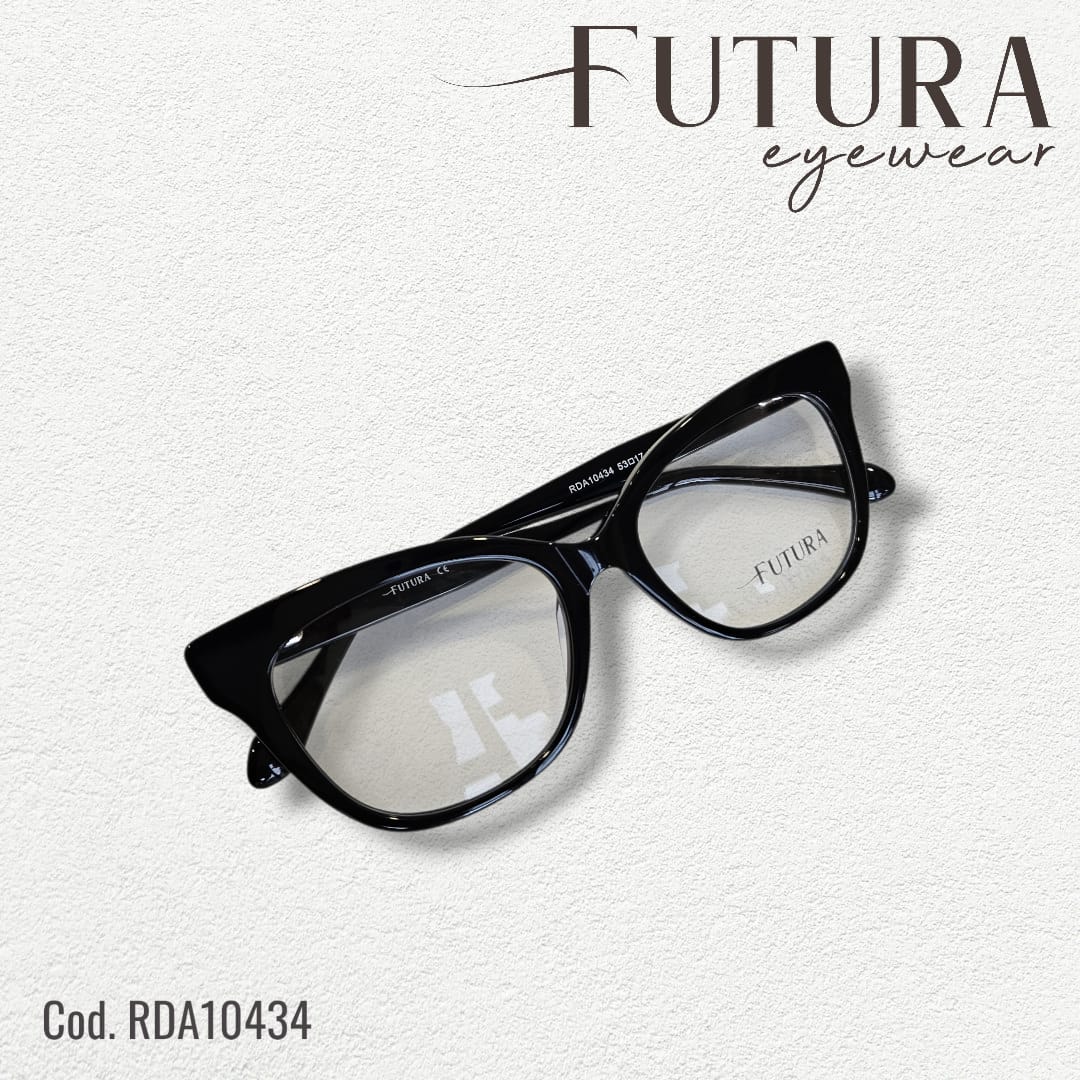 Il modello da vista Futura Eyewear ha un design elegante e contemporaneo, si caratterizza da una forma cat-eye decisa e femminile, reinterpretata in chiave moderna con linee morbide e ben definite che valorizzano i lineamenti del viso.